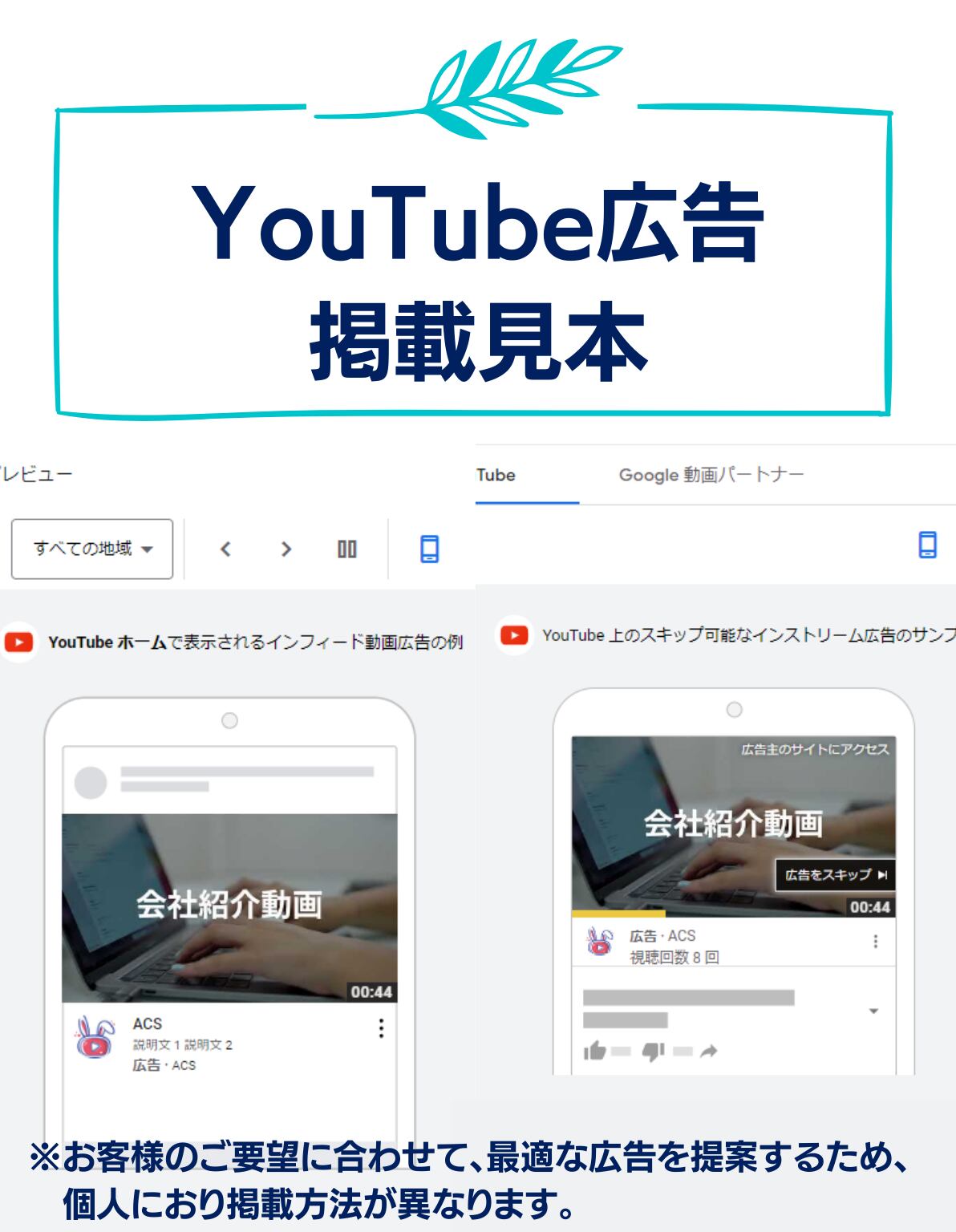 ※YouTube広告には複数の設定方法がありますので、詳細なプランについてはお問い合わせください。